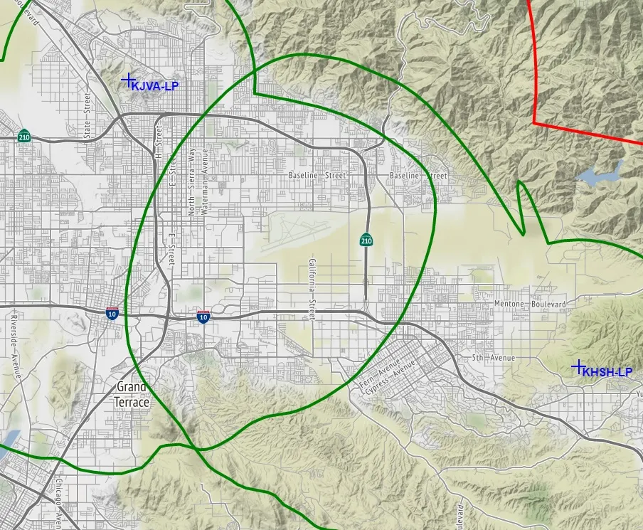 I am very disappointed by the Audio Division's decision on the Petition for Reconsideration filed by Vida Abundante, the licensee of first-generation LPFM station KJVA-LP, San Bernardino, CA regarding interference by second-generation station KHSH-LP, Redlands. Instead of thinking outside the box and running some simple contours (like I did below), the Bureau fell back on a regulation that has been rarely applied in the broadcast context and dismissed the petition because it did not contain some kind of engineering affadavit.